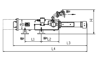 型號 管徑 出入水口 L1 L2 L4 d 濾網(wǎng)面積 處理水量 重量